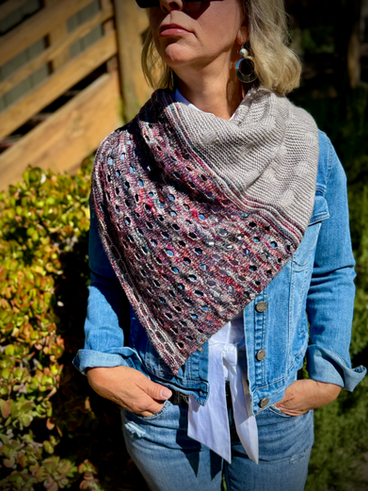 Sometimes it feels like we’re all just going in circles—retracing steps, looping back to where we started, spinning around until we finally laugh at ourselves. Going in Circles is a shawl that embraces that motion: smooth circles that settle into the fabric, airy rings that open the path, and a colorful border that ties the whole loop together. It’s playful, a little dizzy, and a lot of fun—proof that going in circles isn’t always a bad thing. In fact, it can be beautiful. Knit top-down, this shawl plays with circle-inspired stitches that shift and flow together. It’s a fun, dynamic design — perfect for that bold, multicolored skein you fell in love with and never quite knew what to do with! Fast forward to this year—I realized I’d be out of the country for the next SoCal Fiber Fair. Panic! What to do? But as I wound up that yak yarn, I knew one thing for sure: simplicity was the way to go. What I didn’t expect was just how magical that simplicity would be. The texture and drape were beyond anything I could have imagined! Pairing such an exquisite yarn with a straightforward stitch pattern turned out to be a stroke of genius, and the texture that emerged was an unexpected delight—like discovering a secret hidden inside each stitch. I have to confess—I got completely hooked on this yarn! The moment I bound off the first shawl, I knew I couldn’t stop there. I cast on a second one almost instantly! Thank goodness Judy & Emily were able to send more yarn my way without missing a beat. It was a knitting emergency, and they totally saved the day!